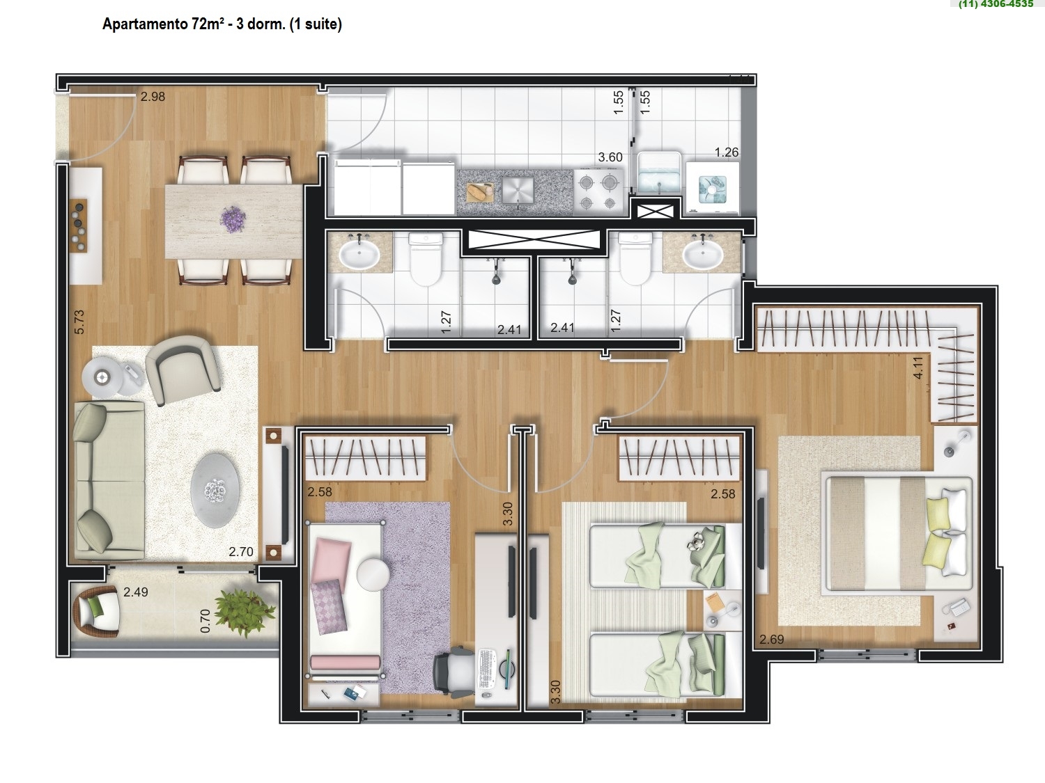 DE 57 a 144m² 2 a 3 dorms (1 suíte) 1 a 3 vagas